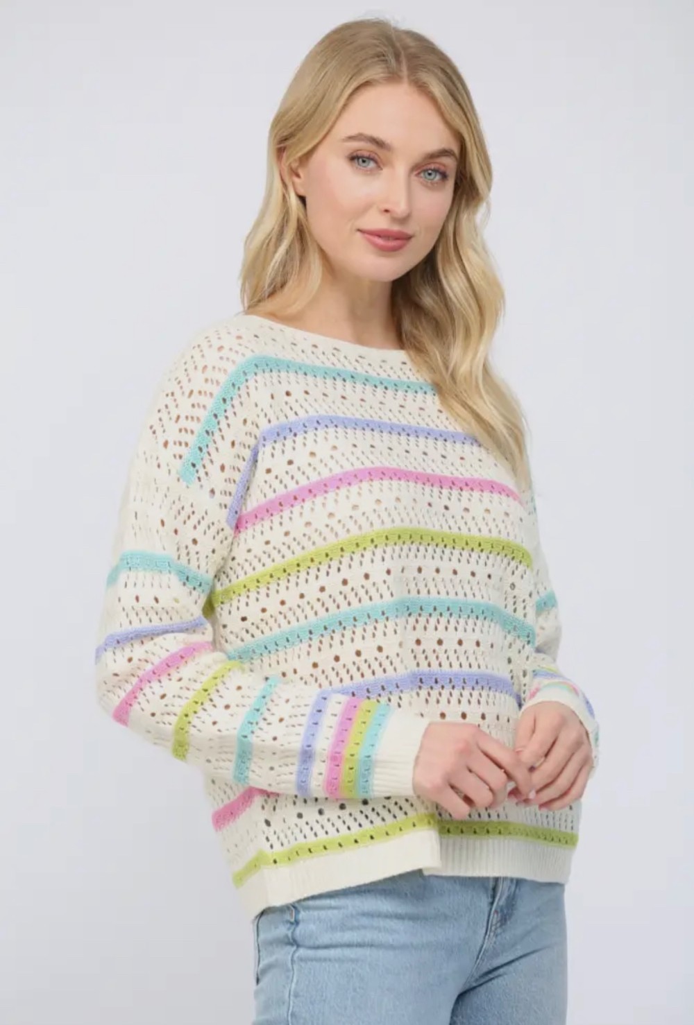 Pastel Striped Crochet Sweater